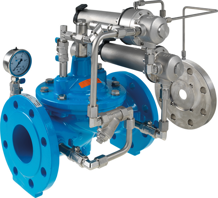 The flow control / limiting valve limits a preset max. flow from a higher pressure zone to a lower pressure zone, independent of varying operating pressures. The nominal flow is infinitely adjustable via the pilot valve up to +/- 15%. The additional pressure reducing function reduces a variable inlet pressure to a constant outlet pressure