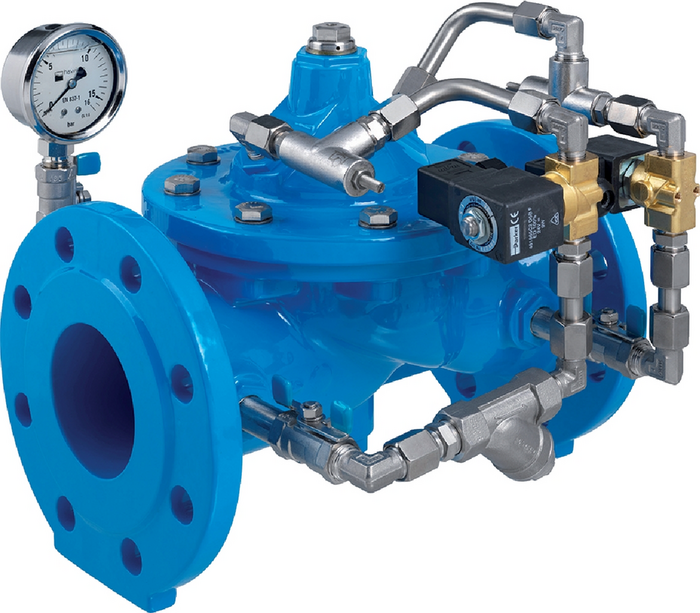 Body parts, orifice plate, housing: GJS-400, Hawle epoxy powder coated Control line, orifice plate: stainless steel Diaphragms, gaskets: EPDM acc. to KTW-BWGL for water Solenoid valve: red brass, stainless steel |