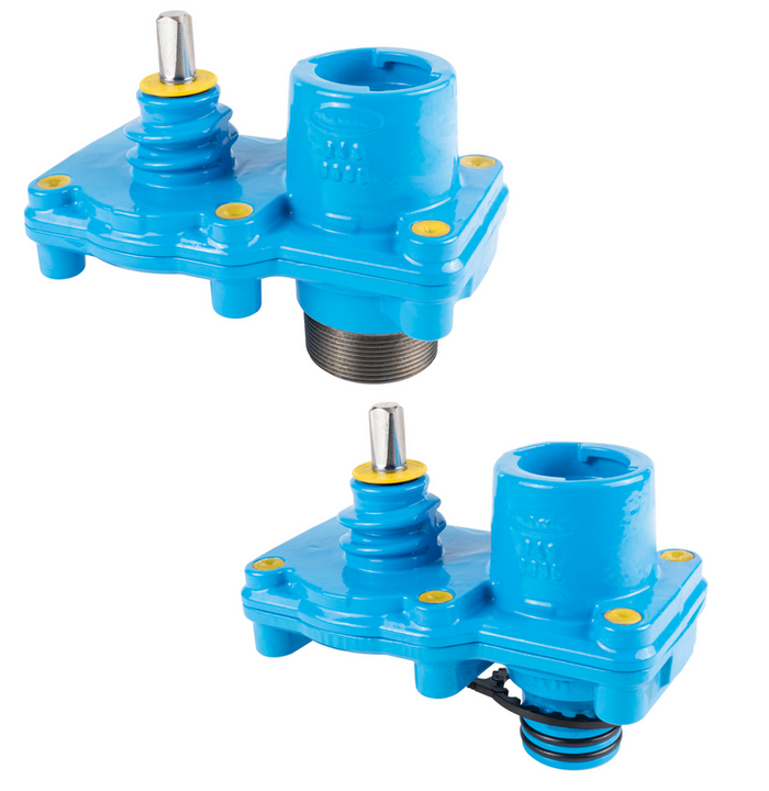 All Hawle pipe drilling saddles type Hawlinger are provided with a shut-off blade of stainless steel driven via slotted link gear as shut-off device. The shut-off blade is moved in a housing at low wear in horizontal direction against fixed metal stops.