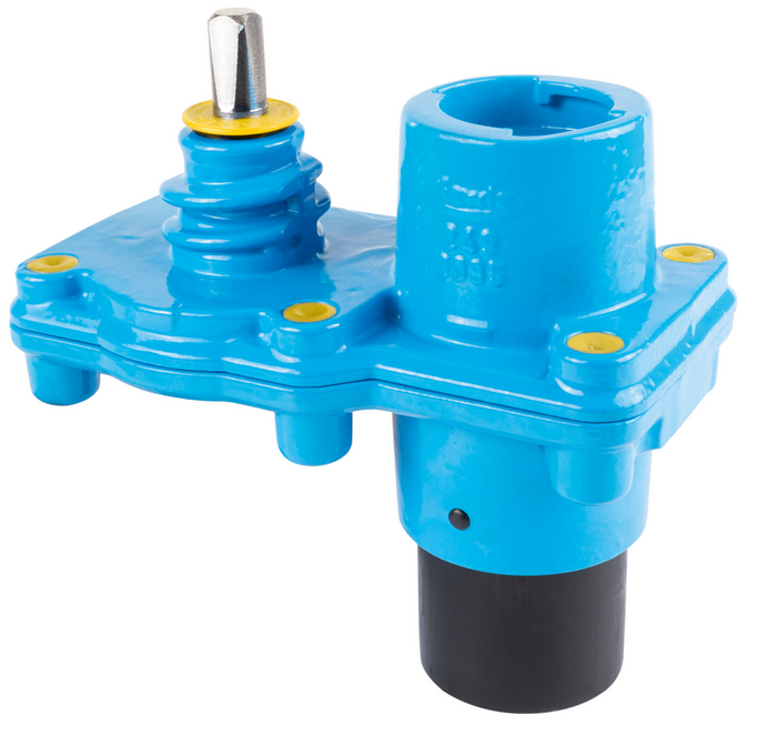 All Hawle pipe drilling saddles type Hawlinger are provided with a shut-off blade of stainless steel driven via slotted link gear as shut-off device. The shut-off blade is moved in a housing at low wear in horizontal direction against fixed metal stops.