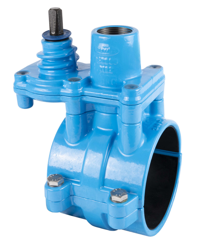 To open or close the outlet area only one half revolution (180°) is required. In combination with a drilling device (e.g. HAWLOMAT, model no. 830-00) the shut-off system permits the easy under pressure drilling of the main line.