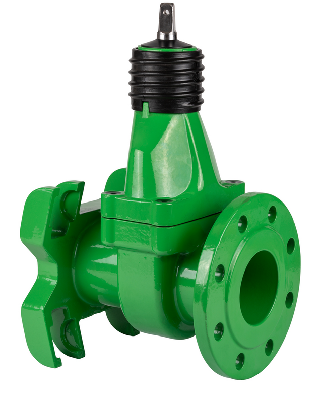 Double strap saddle and gate valve combinations with flanged outlet DN 80 are to be used for lateral drilling of DCI, steel, and AC pipes DN 150 - DN 500.