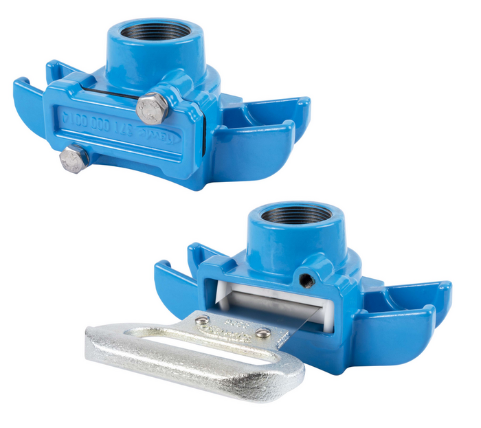 Adaptation to the main pipe is effected via holding strap and saddle gasket (model no. 309-00, 310-00, 311-00, 311-01, 311-02, 311-03) of the appropriate nominal width.