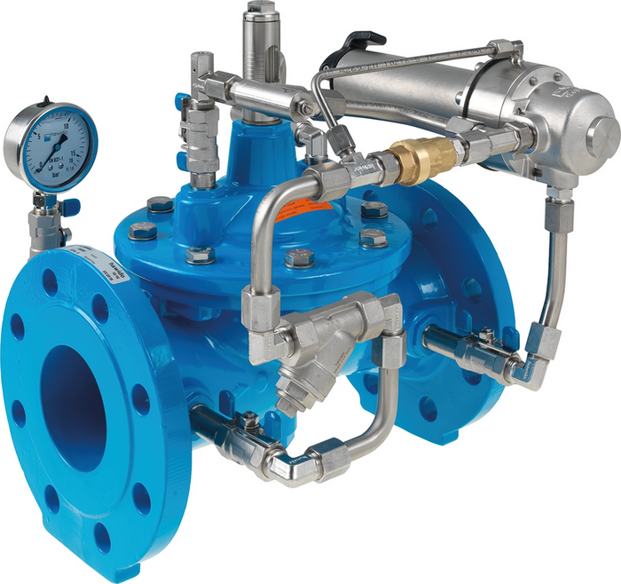 Otpuštanje odnosno održavanje tlaka kod sigurnosnog ventila / ventila za održavanje tlaka regulira se nestupnjevito preko upravljačkog ventila u području 1,5 - 12 bar. Preveliki tlak u mreži oslobađa se brzim otvaranjem glavnog ventila. Da bi se izbjegli hidraulički udari ventil se polako zatvara. Funkcija zaštite od povratnog toka ne dozvoljava povrat medija čim je ulazni tlak manji od izlaznog.