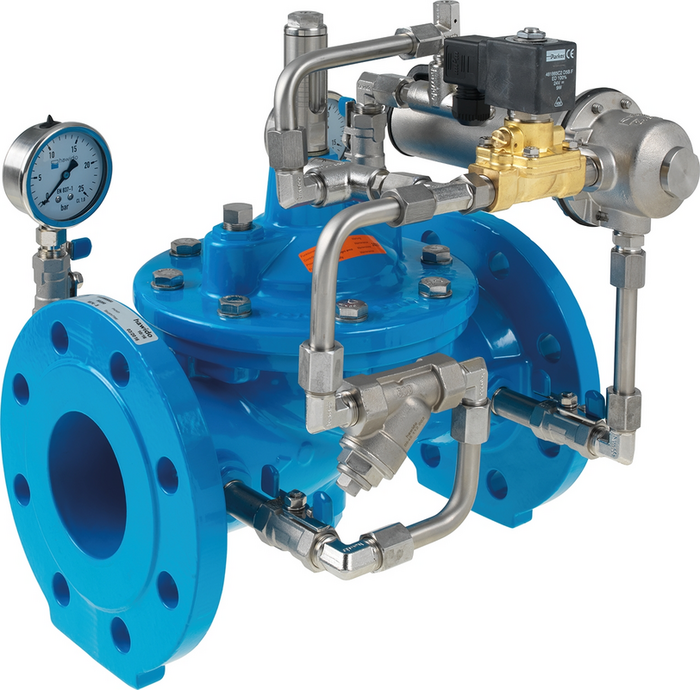 Ventil za smanjenje tlaka smanjuje varijabilni ulazni tlak na konstantni izlazni tlak, neovisno o promjenjivom protoku. Bez napona glavni ventil otvoren.