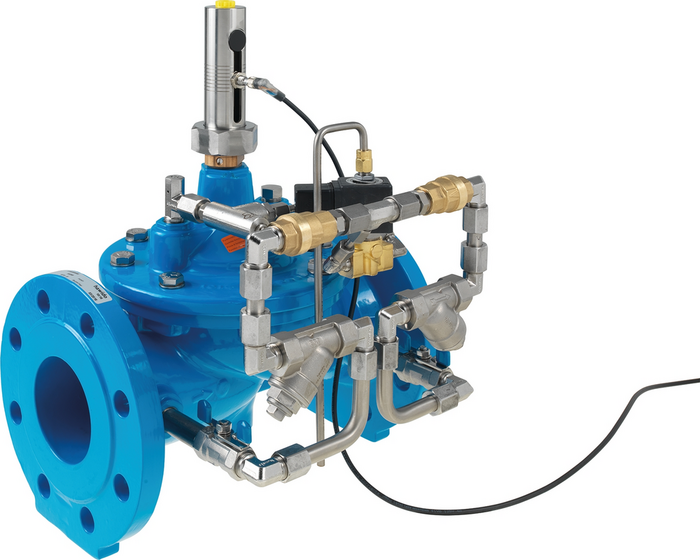 Ventil za zaštitu pumpe se otvara s određenim vremenskim odmakom nakon pokretanja pumpe, nakon što se aktivira elektro-magnetni ventil. Time postupno raste tlak u mreži sve dok pumpa ne postigne svoj radni tlak. Kod zaustavljanja pumpe prvo se isključuje elektro-magnetni ventil, tako da se glavni ventil polako zatvara prije nego što pumpa stane. Kod nestanka struje zatvara se ventil za zaštitu pumpe preko ugrađenog nepovratnog ventila. Elektro upravljanje je potrebno osigurati na licu mjesta.