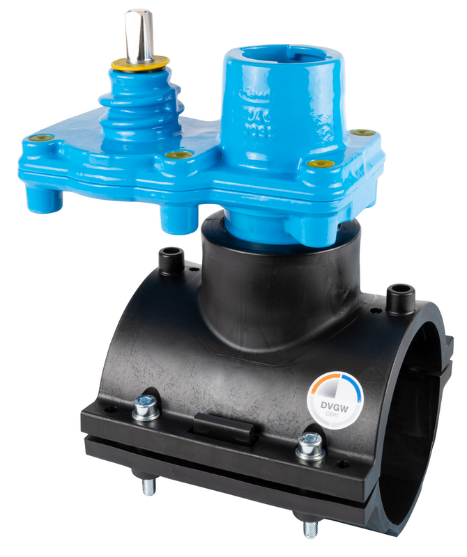 Kućište: GJS-400 Hawle epoksidna praškasta zaštita Vreteno i pogon zaporne pločice: nehrđajući čelik Zaporna pločica: nehrđajući čelik Brtve: NBR za plin Obujmica HA-WELD: PE 100 |