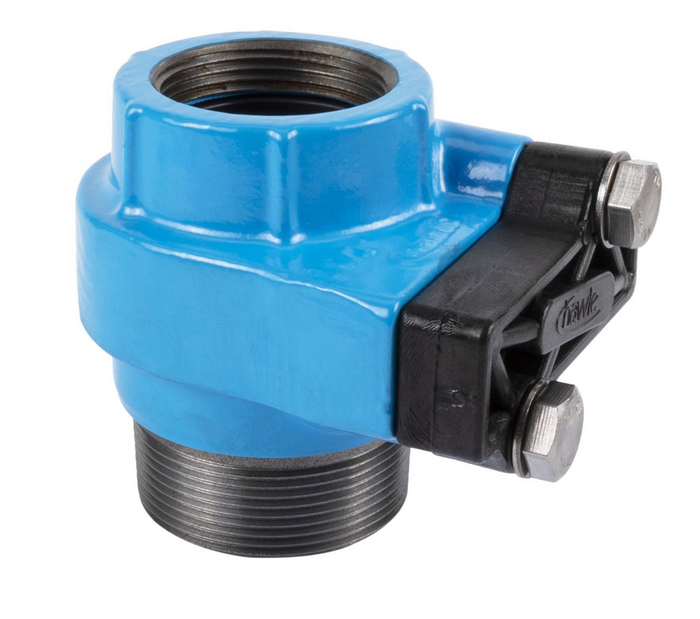 Nastavak za ubušivanje pod tlakom sa gornjim priključkom sa unutarnjim navojem prema DIN ISO 228-1 i donjim priključkom sa vanjskim navojem prema DIN EN 10226 je namijenjen za primjenu sa navojnim obujmicama ili ogrlicama.