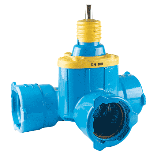 E2 MMB zasun sa svih strana sa BAIO® dvofunkcionalnim naglavkom za sistemski spoj sa BAIO® utičnim krajevima i za priključak lijevano željeznih, čeličnih, PE i PVC cijevi.